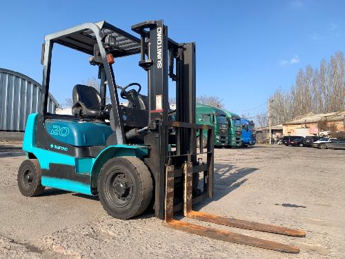 Вилковий дизельний автонавантажувач Sumitomo (Mazda) з бічним зміщенням. 2012 року. Модель 11FD20PAXI98D. Номiнальна вантажопідйомність 2 тонни. Максимальна висота підйому вантажу 3 метри. Щогла двохсекційна (duplex) яка не втрачає вантажопідйомності при висоті підйому. Коробка перемикання передач надiйна i найпоширенiша на данний час - гiдромеханiка (автоматична із гідротрансформатором). Обладнаний сучасним економічним двигуном Yanmar 4TNE98, 4-циліндровий, робочим об'ємом 3.3 літра і потужністю 60 к. с. який славиться своєю надійністю і невибагливістю і головне ремонтопридатний. Встановлювався на багатьох японських/європейських навантажувачах, таких як Yale, Hyster та iнших. Управління гідравлікою здійснюється простою і перевіреною часом системою - важелями. Колеса 12 діаметра на ведучiй осі, що покращує прохідність автонавантажувача і збільшує його кліренс. Встановлено каретку бічного зміщення (side-shift), яка дозволяє зміщувати вантаж на вилах вліво та право на 10 см у кожну сторону, що суттєво прискорює процес роботи та робить його безпечнішим.